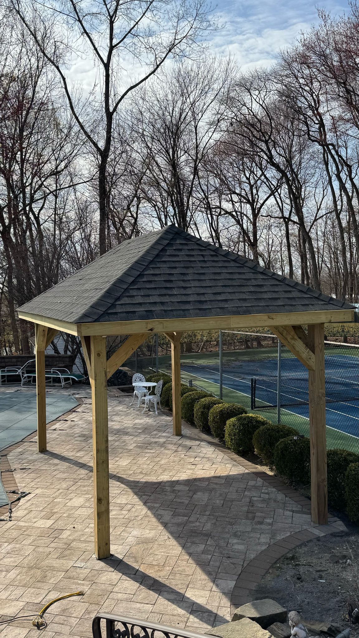 If you need some shade poolside, we can build a pavillion for that! #sheds #shedcompany #fescosheds #shedbuilders #babybarns #arbors #trellises #gazebos #pavillions #shedsrockland #shedsbergen #shedswestchester #shedsorange #fencecompany #fenceinstaller #fencecontractor #carriagehouse
