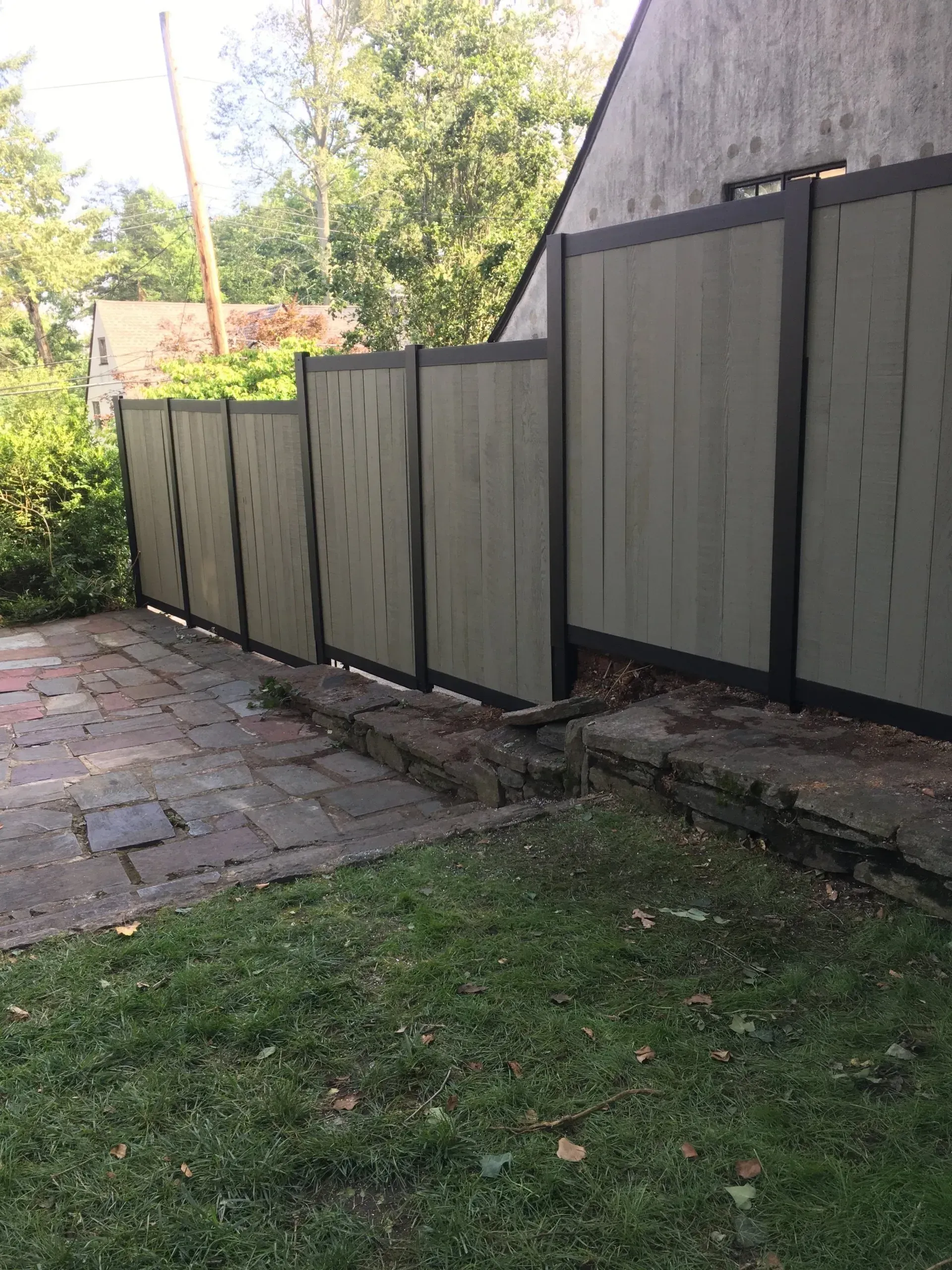 Matte black aluminum frame with stained red cedar board infill. #fence #fencerockland #fenceBergen #fencewestchester #fencecompany #fenceinstallation #fencecontractor #fencingcompany #fencedesign #fencebuilding #fences #fenceideas #privacyfence #poolfence #gardenfence #decorativefence #homeimprovement #outdoorliving #backyarddesign #backyard #outdoordesign #diy #diyfence #doityourself
