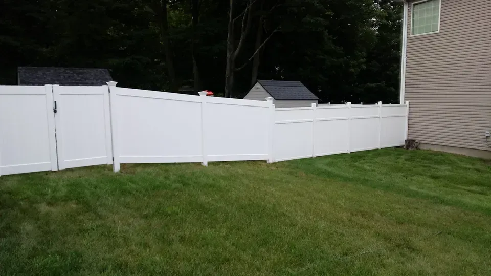 this pic shows our active yards dogwood home privacy fence installed with a gate going down a slope to meet the neighbors fence. not only does the dogwood fence aesthetically look better, but structurally it beats the neighbors fence hands down. our rails are 7" wide versus the neighbors rails which are 4" wide thus requiring 3 rails to provide support instead of 2. in addition their fence sections can only be 6' wide due to the flimsy rails, while ours are 8' wide with no sag. our pickets are not only tongue and groove but include glide lock which snaps the pickets together so they don't get blown out. the neighbors have simple tongue and groove pickets which are easily blown out by winds. so who got the better job?