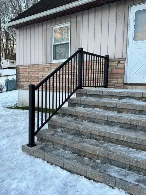We installed this railing just in time to beat the snow. #railing #railings #aluminumrailing #vinylrailing #railingrockland #railingwestchester #railingbergen #railingorange #ada #adarailing #cablerail #glassrail